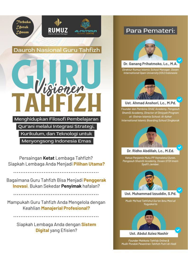 Pendaftaran Dauroh Nasional Guru Tahfizh Visioner 2025